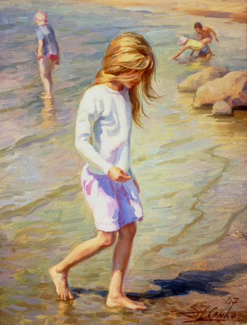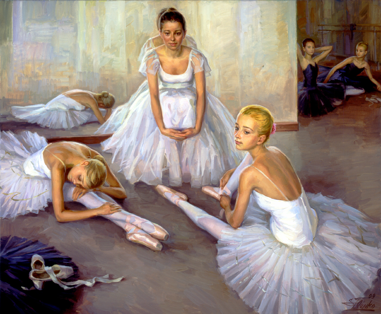 Born in Georgia in 1960, Serguei Zlenko is a classically trained artist whose works represent the school of traditional Russian painting. His works include, amongst other things, topographical landscapes, classic ballet dancer motifs and figurative portraits of people, animals and events. Zlenko is inspired by a vast array of topics, which can be seen in his multidimensional artworks. In his portraits, Zlenko succeeds in capturing a natural and spontaneous moment which makes his paintings almost photolike. His extensive academic training is visible in the different techniques he masters and the unusual visual angles and asymmetrical ordonnances he uses. In his ballet paintings, Zlenko pictures not only the elegance and glorious postures of the ballerinas but also the life backstage with concentration before a show and all the physical struggles. Most of Zlenko’s works are oil paintings, but he also works with water colours and pastel. Serguei Zlenko has studied in the Russian Art Academy’s Art School and the Surikov Art Academy in Moscow. His art is shown in galleries and collections all over Europe and the United States