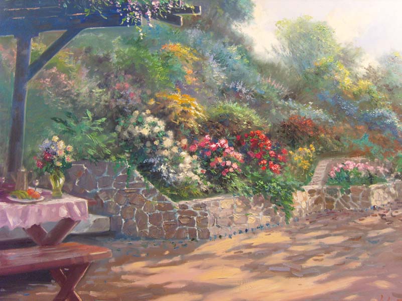 Robert Lui   In The Garden   36x48 Oil On Canvas